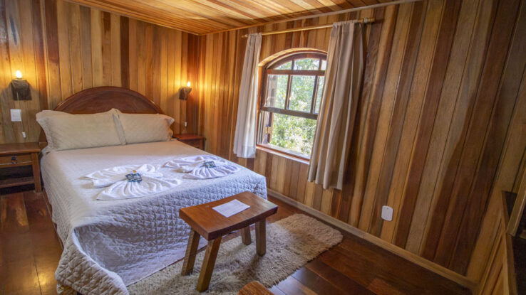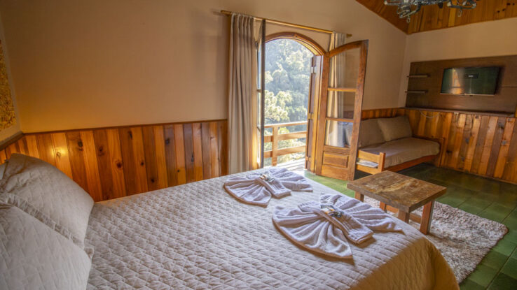 A maior e mais completa acomodação da pousada. Além do espaço amplo, dividido em dois ambientes separados, sala/cozinha e suíte, esta acomodação possui uma grande sacada com a melhor vista da pousada, com uma visualização panorâmica privilegiada das montanhas e da mata que cerca a pousada. Para o seu conforto essa acomodação possui uma sala…